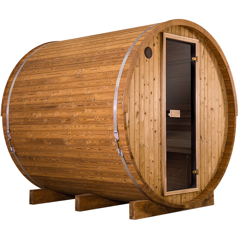 6-person, premium-quality DIY Barrel Sauna Kit with panoramic window. Tall enough to stand in comfortably, this is the largest, most spacious barrel sauna available. Natural light from the glass door and panoramic window illuminates this beautiful pace. Quality materials and superb engineering make this the very best outdoor sauna.
